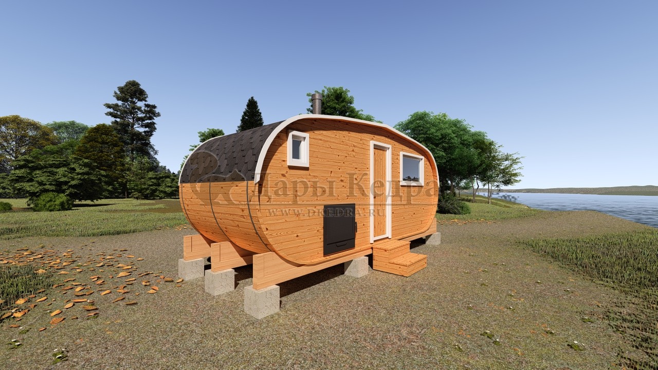 Баня-бочка буханка из кедра с боковым входом (все размеры) Это самая просторная модель бани. Благодаря этому ее можно использовать не только по назначению, но и в качестве летнего домика. Боковой вход у такой модели находится в начале или в середине конструкции. Моечная оснащена душевым поддоном. Двухуровневый открытый полок и лавочка в парилке сделает принятие процедур более комфортным. По вашему желанию баню-бочку можно дополнить печью с внешней загрузкой, благодаря которой весь мусор после топки останется на улице. Баня-бочка буханка из кедра с боковым входом не требует полноценный фундамент, поэтому при необходимости ее можно перенести в другое место. Обращаем Ваше внимание, что в стандартную комплектацию бани входят полки открытого типа в парной с обеих сторон. Дополнительно можно заказать полок закрытого типа или лавку! Кедр обладает ароматическими свойствами. Он не деформируется и влагоустойчив, при правильном уходе за деревом на нем не развиваются грибки и плесень.
