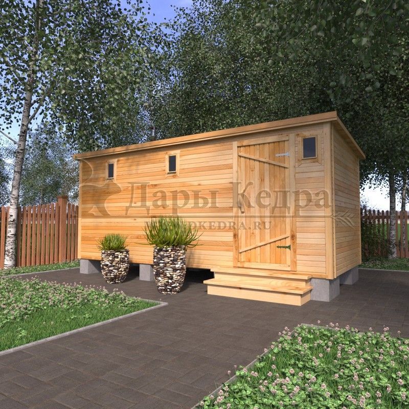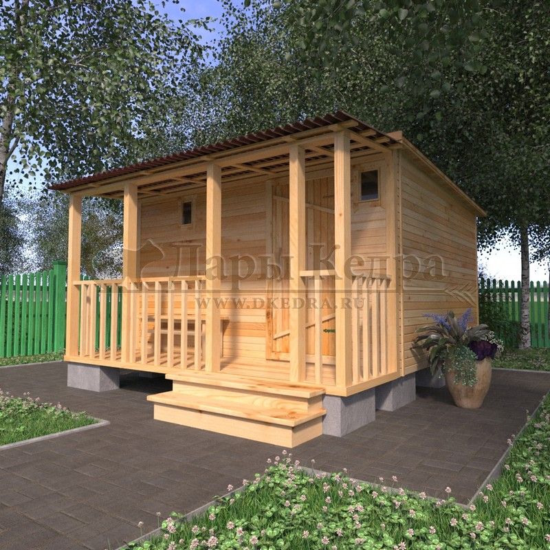 Каркасно-щитовая баня из кедра «Оптима» с верандой Классическая щитовая баня под ключ из кедра 4 на 3 метра, с двумя отделениями, предбанником и парной. Время растопки такой бани не превышает 30 минут. На просторной веранде можно оставить вещи или отдохнуть после парения Баня изготавливается из кедра без отбора по сучкам. Сучки у кедра не смолят и именно они содержат в себе максимальное количество полезных веществ - фитонцидов. Обращаем Ваше внимание, что в карточке товара изображено изделие с дополнительными опциями для ознакомления. Перед оформлением заказа, проконсультируйтесь у менеджера и он предоставит актуальную информацию по стандартной комплектации
