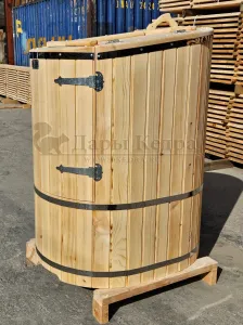 Бондарная фитобочка имеет такое название, потому что выполнена по старинной технологии в шип-паз, без использования каких-либо иных дополнительных скрепляющих элементов. Производственное оборудования позволило для круглых бочек применить лунный паз глубиной 2.5 см, который имеет надежное прилегание досок друг к другу, скрепляя бочку плотно, не пропуская пар и имеет вид фаски. Кедровая Фитобочка - это мини парная, которую можно установить в квартире и каждый день использовать в домашних условиях. Настоящая лечебница для здоровья всей семьи. Во время парения человек сидит внутри кедровой бочки, а голова находится снаружи. Благодаря этому исключается перегрев и процедура парения комфортно переносится пожилыми людьми и детьми.
