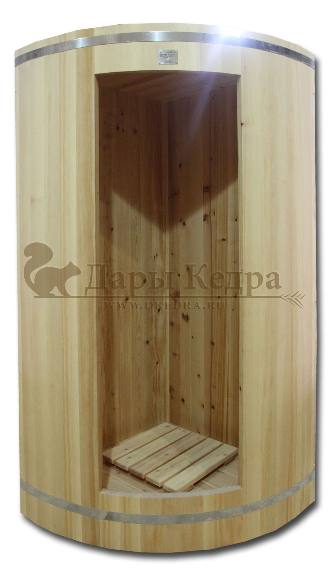 • Деревянная круглая (овальная) душевая кабина из кедра Душевая кабина круглая (овальная) открытого типа, лёгкая и изящная, впишется в любой интерьер и будет хорошо смотреться, как на улице так и в помещении. Круглая душевая кабина из кедра придаст презентабельный вид вашей ванной комнате или спа-салону. Обращаем Ваше внимание, что потолочный светильник, штанга для шторки, душевая лейка не входят в стандартную комплектацию душевой кабины. Древесина кедра богата эфирными маслами, которые при воздействии температур испаряются в воздух, что благотворно воздействует на организм во время принятия душа.