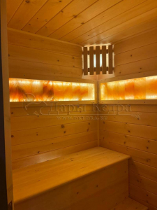 Это специально оборудованная деревянная кабина для сухого и влажного парения. Электропечь нагревает пространство внутри и позволяет сбрызгивать камни водой, слегка увлажняя воздух. Такая процедура позволяет избежать перегрева. Двойные стенки кабины с теплоизоляционным материалом удерживают тепло. Установка сауны в угол позволяет рационально использовать пространство помещения. Финская сауна с электропечью подойдет как для домашнего использования, так и для коммерции. Доставляется в разборном виде щитами, собирается по инструкции с помощью шуруповёрта.