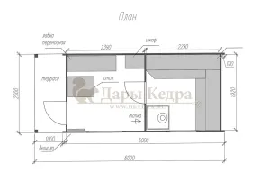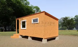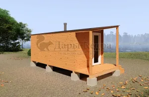 Это классическая прямоугольная модель бани с двумя отделениями: предбанником и парилкой, а так же удобной терассой. Предбанник оснащен лавочкой и вешалкой. Парилка оборудована двухуровневым открытым полком и печью. Время растопки такой бани не превышает 30 минут. Каркасно-щитовую баню можно заказать как в готовом, так и в разборном варианте. В разборной модели готовые щиты из кедра быстро собираются в полноценное строение, что также позволяет исключить лишний строительный мусор. Такая баня не требует полноценный фундамент, поэтому при необходимости ее можно перенести в другое место.