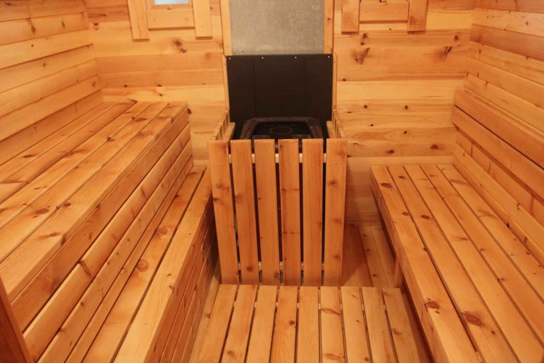 - Лавки из кедра в комнате отдыха