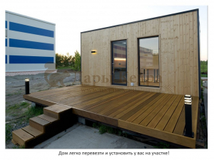 Это утепленный домик прямоугольной формы с панорамным окном и двумя помещениями: жилой комнатой и санузлом с душевой зоной. Может быть изготовлен по готовым стандартам или вашим индивидуальным размерам. Современные материалы, используемые при проектировании, отличаются экологичностью и прочностью.