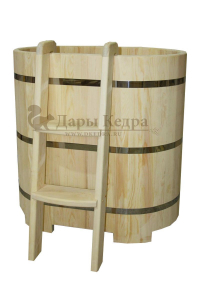 Это герметичная емкость для воды из кедра, которая используется для отдыха и охлаждения тела после процедур парения. Купель оснащена лавочками, приставной и внутренней лестницей из кедра. За счет стяжных болтов обручи из нержавеющей стали плотно прилегают к кедровой купели. Это позволяет равномерно распределять нагрузку воды и сохранить форму изделия в период эксплуатации. При правильном уходе купель для бани не рассыхается и не подвергается гниению. Овальная купель подходит для уличного и комнатного использования.