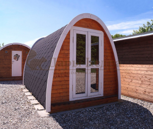 Экологичный утепленный дом "Викинг" подходит для постоянного проживания на даче или для обустройства загородных баз отдыха. Оригинальная модель включает два помещения и позволяет рационально использовать внутреннее пространство. Кемпинг-дом предполагает два варианта размещения: