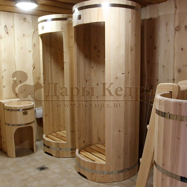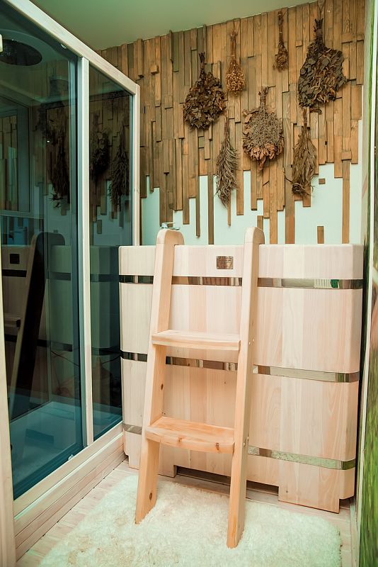 Купель идеально вписалась в помещение. Мини-бассейн из кедра - полезно, весело и практично! Рекомендую!