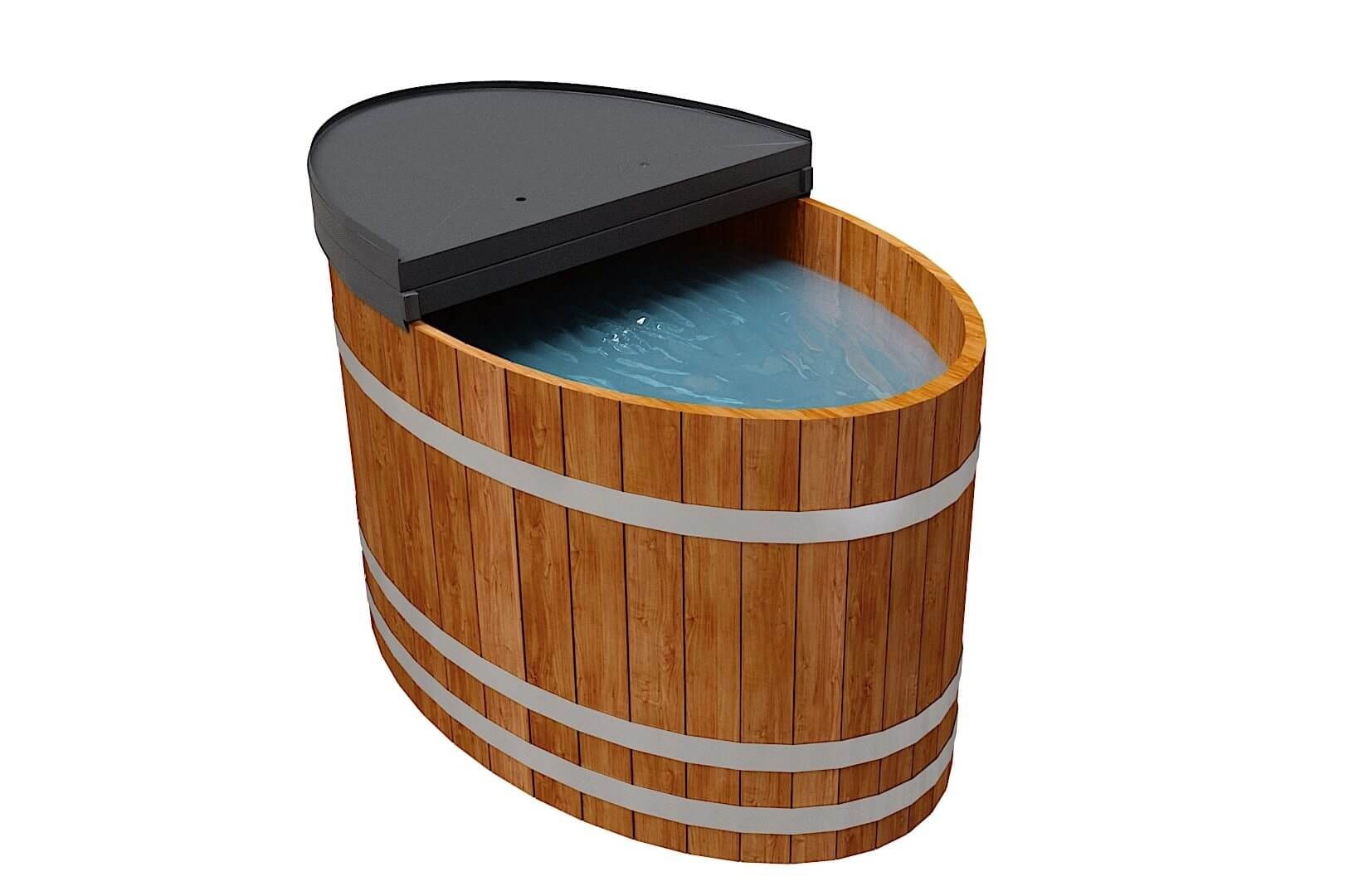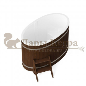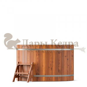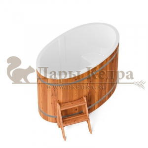 Это купель с внутренней овальной чашей, которая изготовлена из современного прочного и термоустойчивого материала (композита). Форма чаши обеспечивает комфортную посадку внутри изделия. Для удобного использования купель оснащена приставной лестницей. Обручи из нержавеющей стали декорируют купель с композитом и равномерно распределяют нагрузку во время процедур.