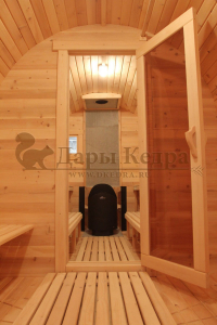 Мобильная баня-бочка с каждым днем набирает все большую популярность благодаря её возможной транспортировки куда угодно: на отдых в лесу, на рыбалку или на побережье реки