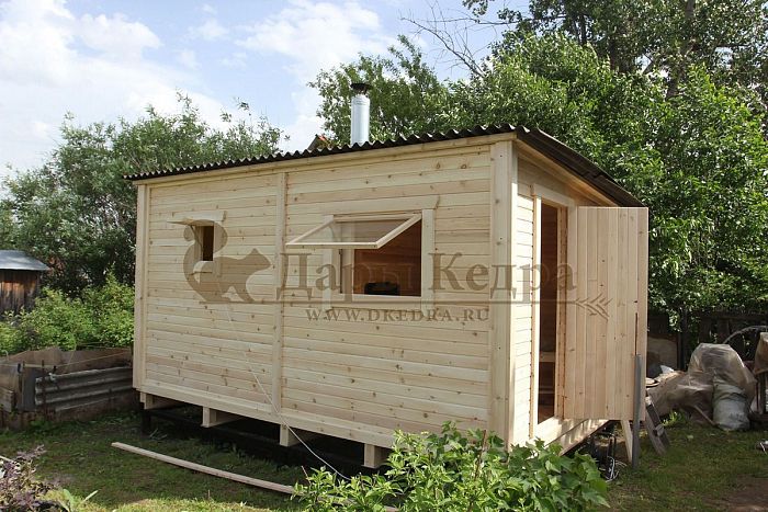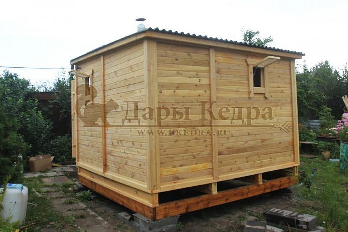 - Металлокаркас на сваях. Такое основание мобильной парной рекомендуется делать там, где грунт нестабильный, выпадает много осадков. При желании снаружи его можно обшить деревом или яхтенной доской.
