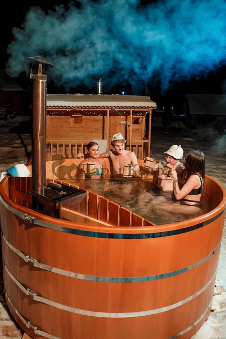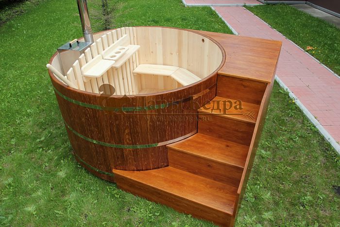 Купель из алтайского кедра укрепляет здоровье, повышает иммунитет благодаря фитонцидам, которые выделяются в воду и воздух. Неповторимый кедровый аромат вы будете ощущать на протяжении всей банной процедуры. Кедр — дерево твердой породы, не боится влаги, жучков, оно очень прочное, а значит устойчивое к условиям внешней агрессивной среды. Купель с дровяной печью подойдёт для дома и дачи. На открытом воздухе в любую погоду (даже зимой) она сохранит температуру воды теплой, комфортной для процедур благодаря дровяной печи.